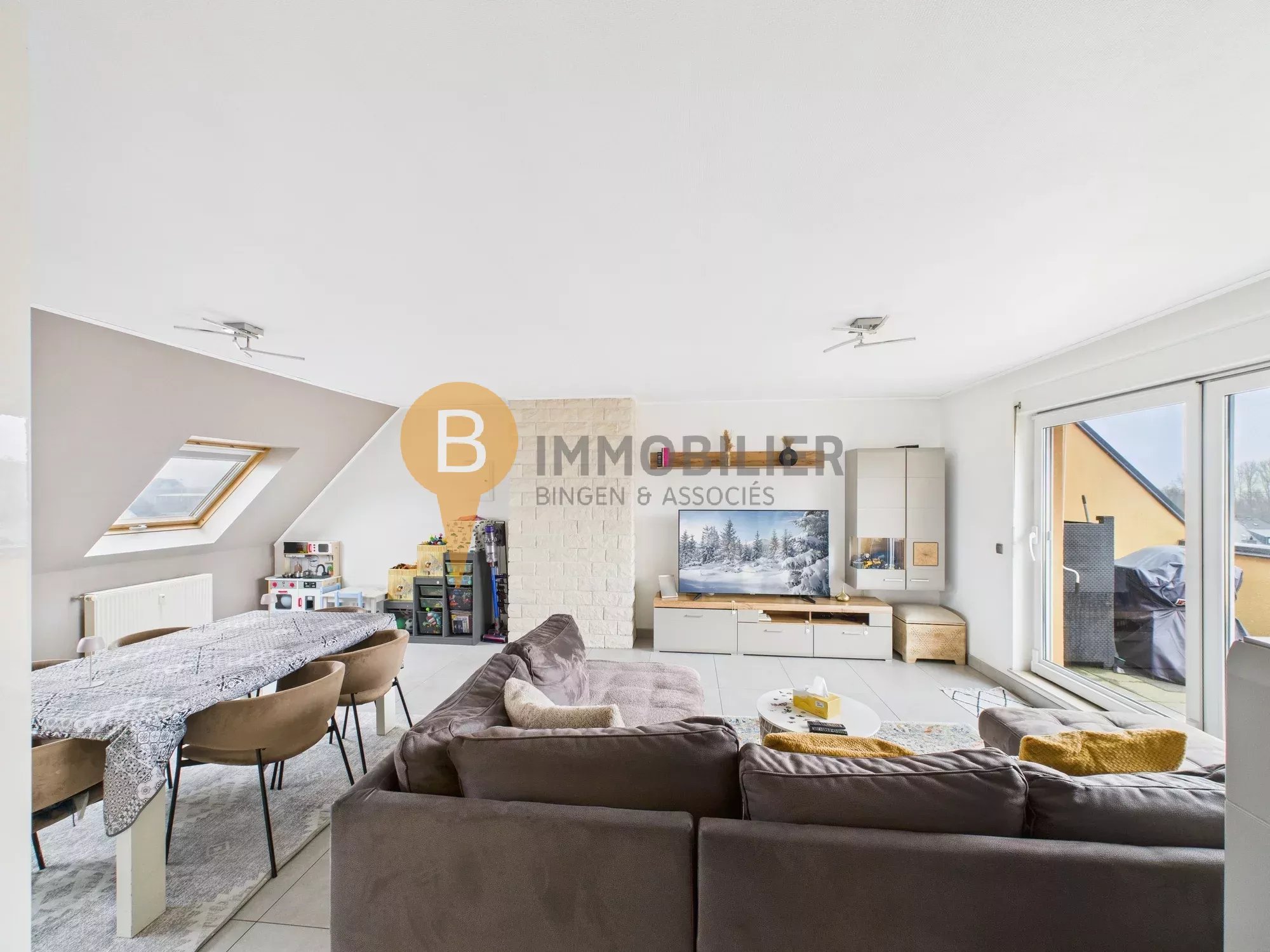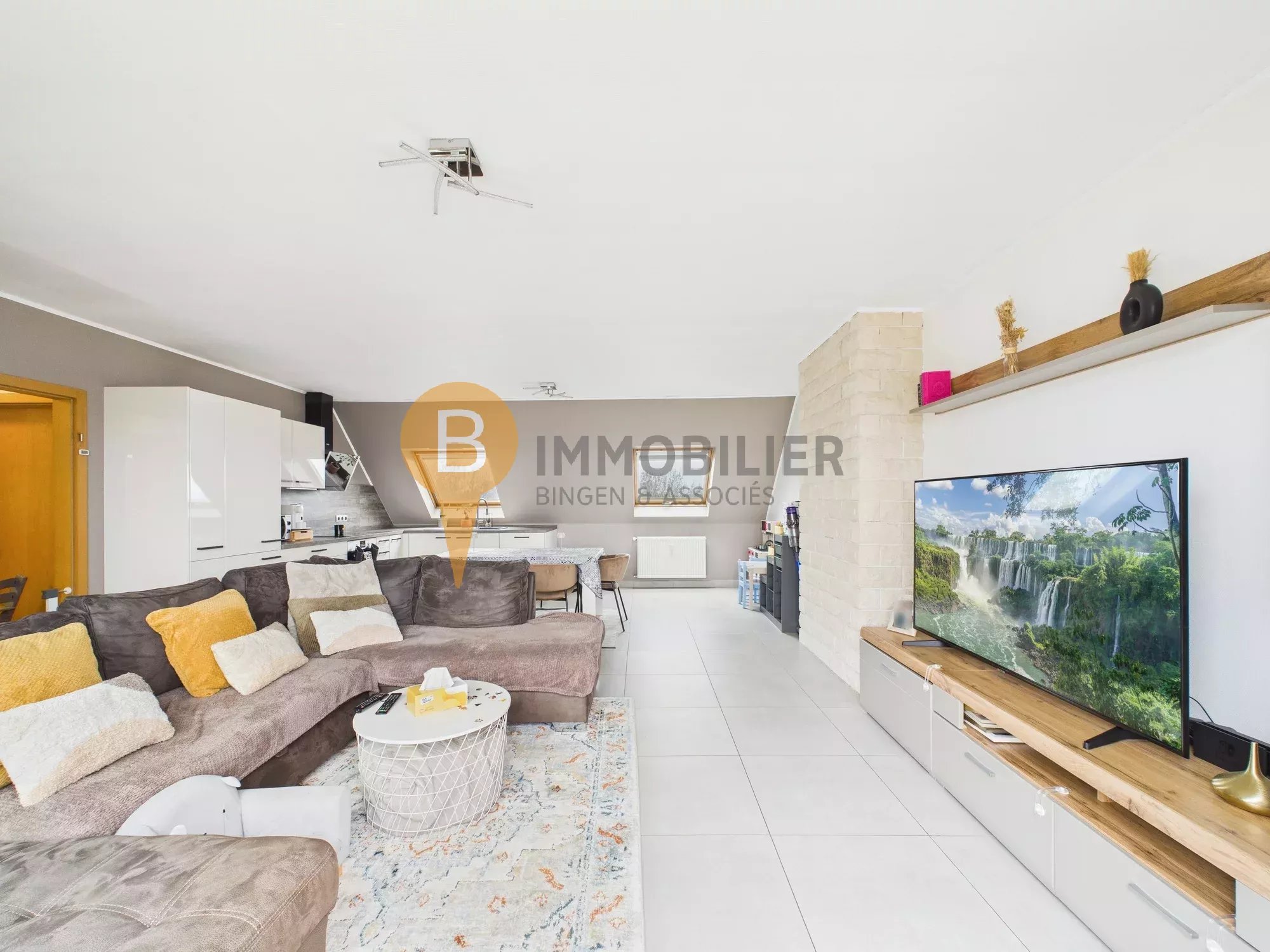 - Séjour / cuisine ouverte (env. ± 39 m2 au total, dont ± 35 m2 avec hauteur > 2 m)