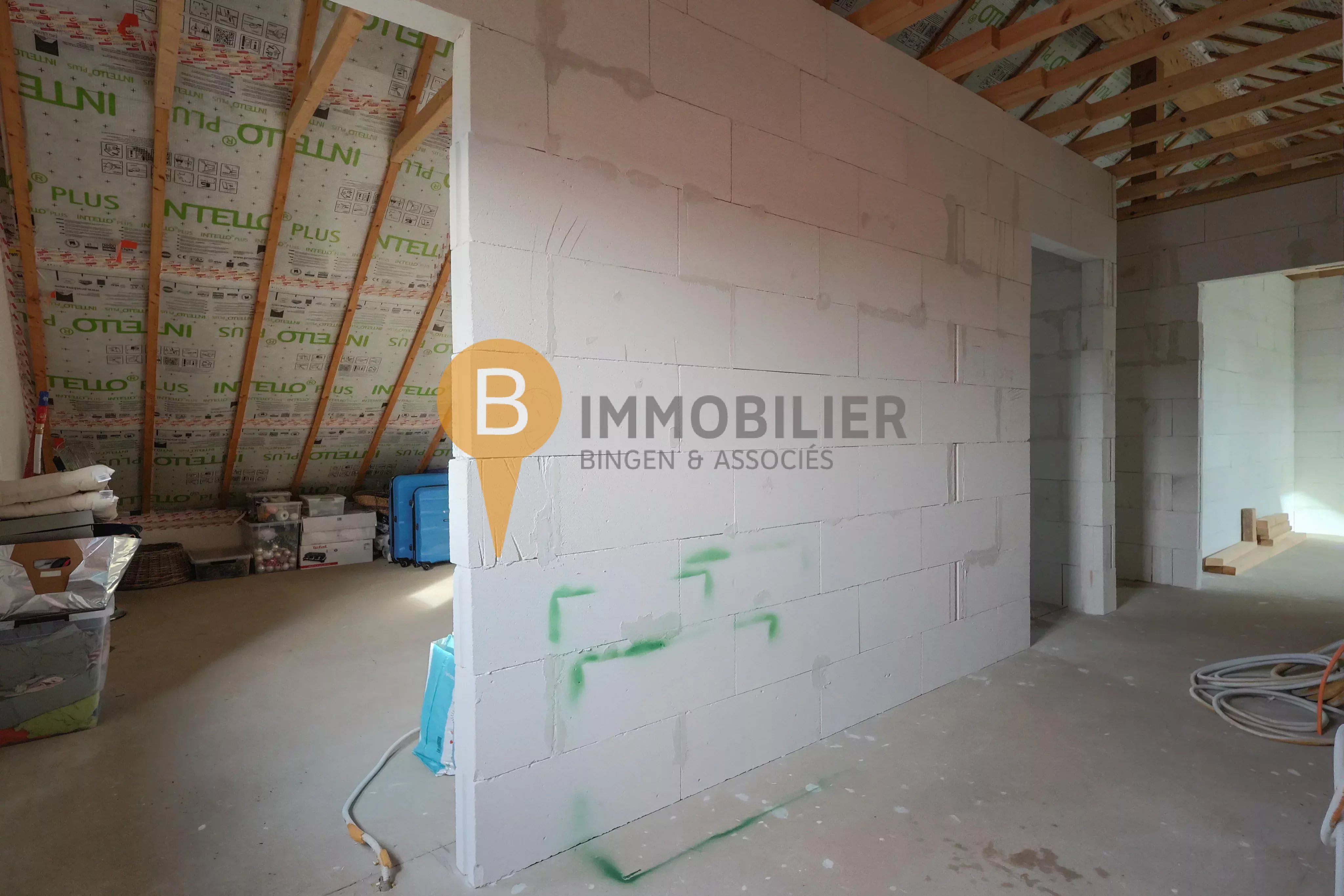 2.étage à aménager: Hall de nuit, buanderie (3,9m²), deux chambres à coucher (12m² & 12,35m²), bureau (6,2m²) et une salle de douche (9m²).