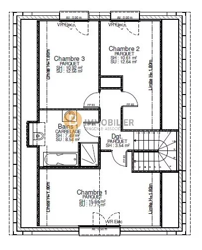 • À l’étage : 3 chambres lumineuses et une salle de bains.