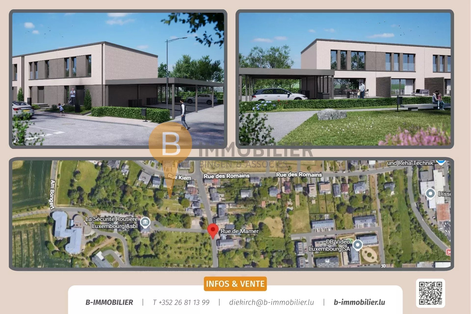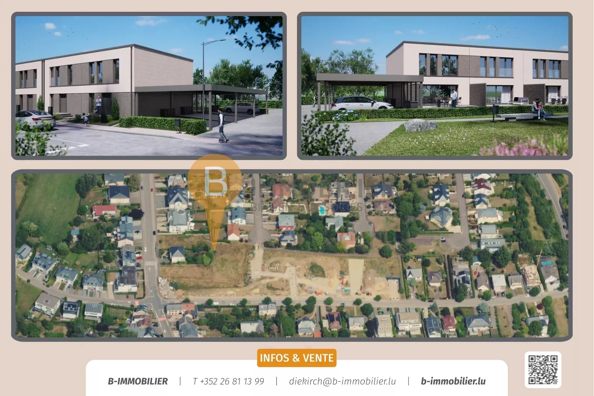 De komplette Dossier (Pläng, Baubeschreiwung, Notice descriptive, asw.) fannt Dir op eiser Internetsäit: www.b-immobilier.lu